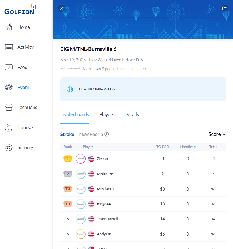 To participate in any CTP Tournament or Monthly Course Challenge, players must have their own free personal GOLFZON ID.